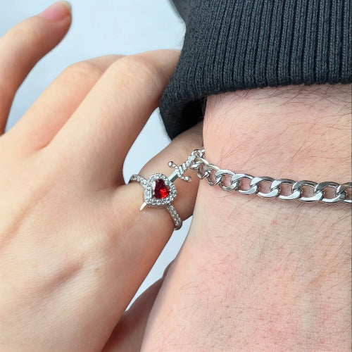 🎁 ¿Buscas un regalo único? Sorprende a tu pareja con un anillo y cadena que juntos representan la alianza sagrada entre la espada y el corazón 💞