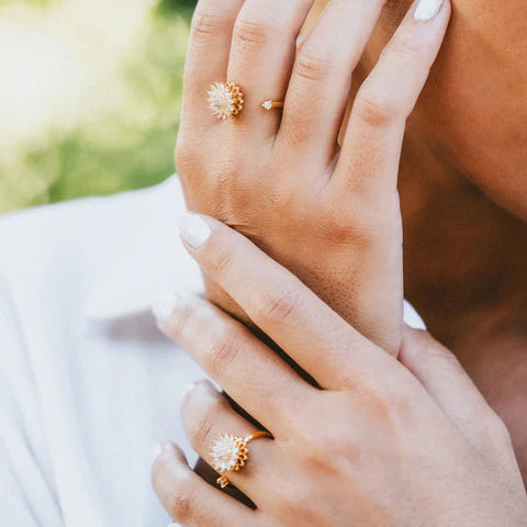 Anillo Girasol Giratorio | Baño en Oro + Caja Premium Gratis ✨