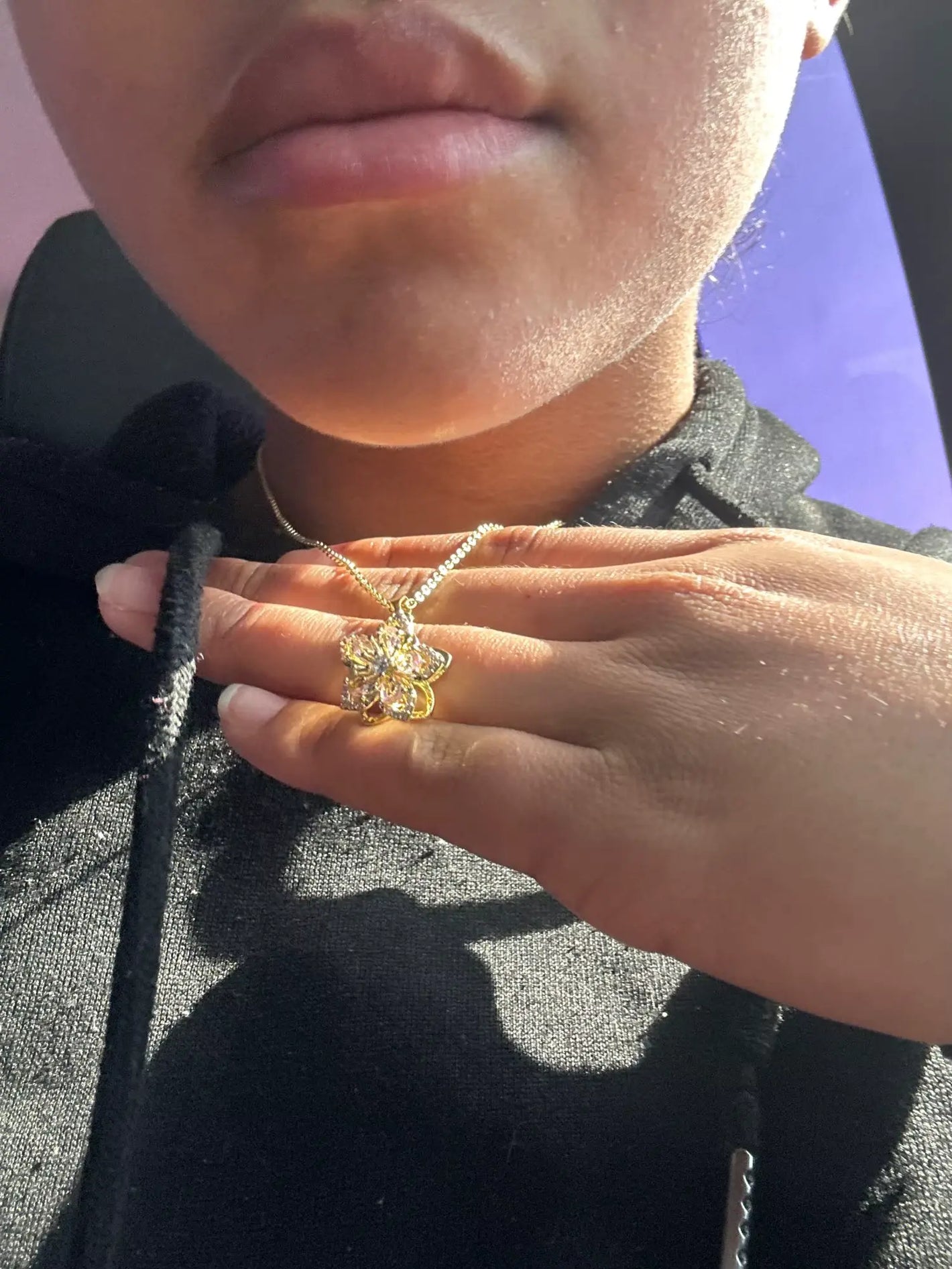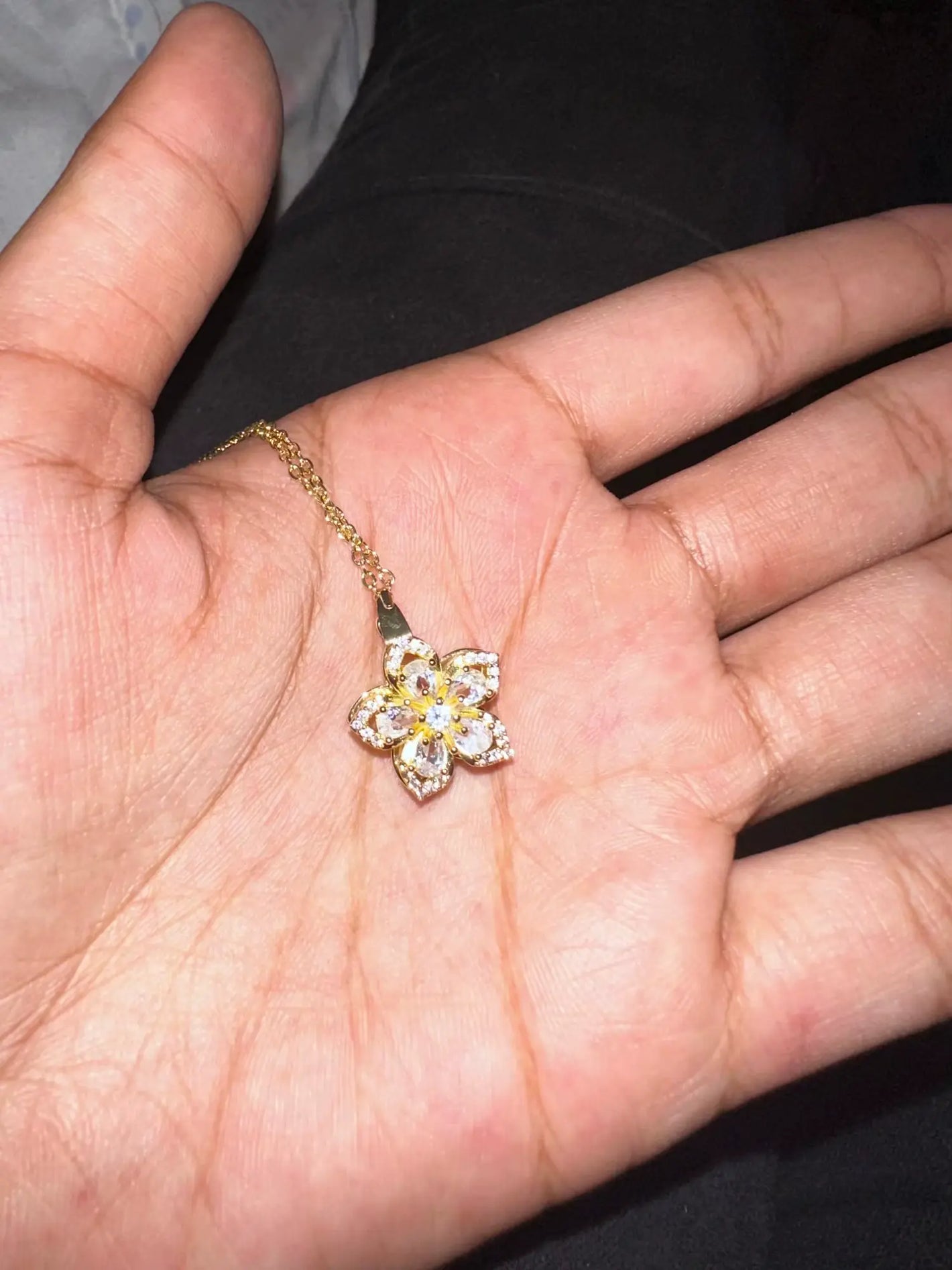 La longitud de la cadena es perfecta, me queda justo en donde quería y el dije brilla muchísimo, mi favorito hasta el momento